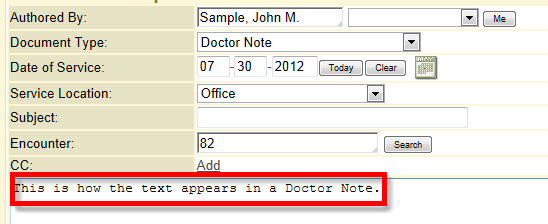 | Doc Notes Color | Background color of Doctor Note (text file) free text field. | ![]() |